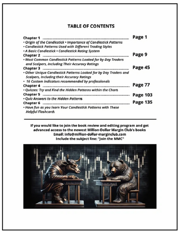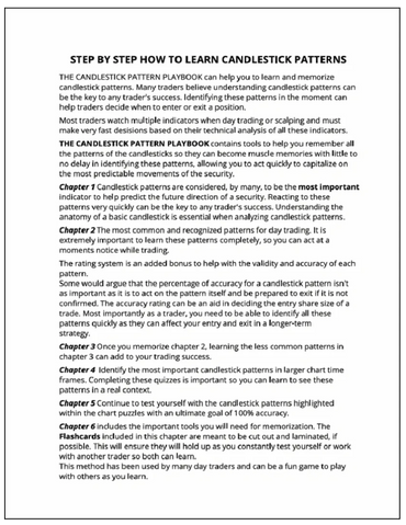"THE CANDLESTICK PATTERN PLAYBOOK: A Professional Trader's Guide to Success" Unlock the secrets of the trading world with this groundbreaking book, meticulously crafted by a team of seasoned professional traders. "THE CANDLESTICK PATTERN PLAYBOOK" is your ultimate guide to mastering technical analysis and chart reading through the power of candlestick patterns. Dive into a comprehensive collection of candlestick patterns, each clearly depicted, thoroughly analyzed, and rated for accuracy. This book is not just a theoretical study; it's a practical, hands-on guide that prepares you to put these patterns into action in real-time trading. Designed with clarity and ease of learning in mind, this guide is perfect for traders of all levels. Whether you're a beginner eager to delve into the world of trading or an experienced trader looking to refine your technical analysis skills, this book is tailored for you. Key Features In-Depth Analysis: Every pattern is accompanied by detailed descriptions and guidelines on how to trade effectively as the patterns emerge. Practical Learning Tools: Engage with quizzes and flashcards - a unique approach to solidify your understanding and recall of each pattern. Real-World Application: Learn how to quickly recognize and utilize candlestick patterns in live trading for maximum profit. Accessible Learning: The book's layout is designed to help you easily memorize and apply candlestick patterns, regardless of your experience level. "THE CANDLESTICK PATTERN PLAYBOOK" is more than a book; it's a trading mentor that guides you through the nuances of candlestick analysis. Embrace the opportunity to learn from the pros and transform your trading approach with confidence. Get your copy now and start your journey towards trading mastery!